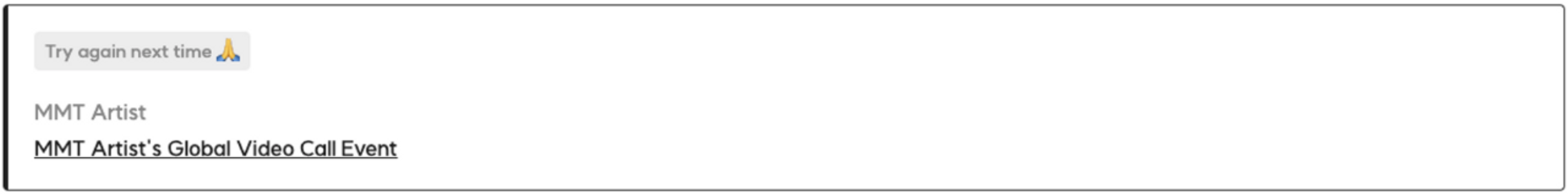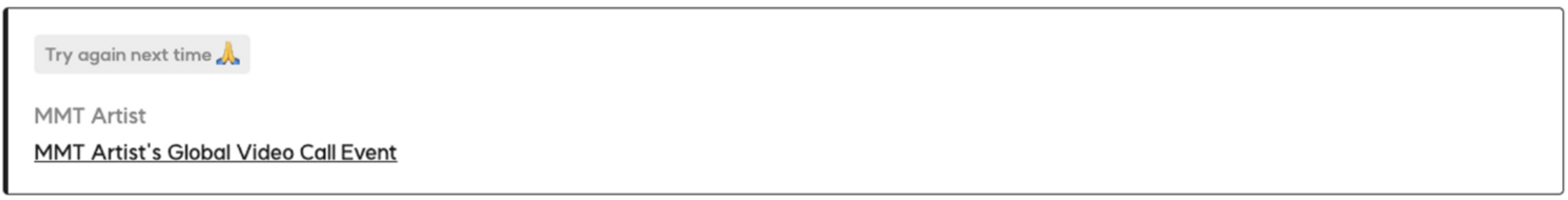 **한 이벤트내 다양한 멤버에게 응모하였으나, 모두 미당첨된 경우에는 ‘응모한 멤버에 상관없이’ 다음의 미당첨 안내만 확인이 가능한 점 참고 부탁드립니다;